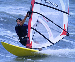 as his biggest sail is a 5.3, and his favourite moves are the 'geronimo',